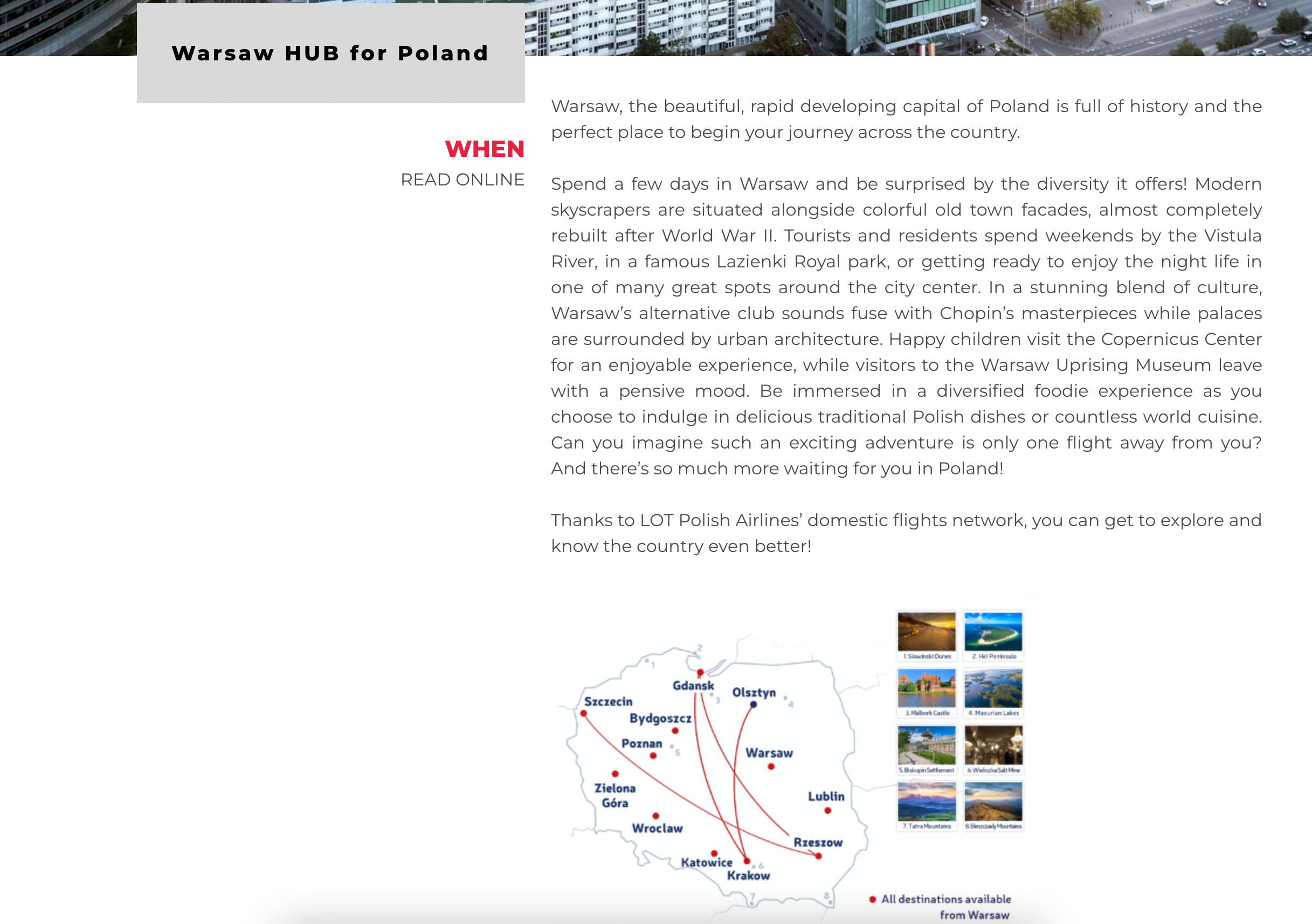 At LOT Polish Airlines, I was writing short advertisement slogans, e-mail newsletters and social media posts, but also long, promotional articles. This example shows how…